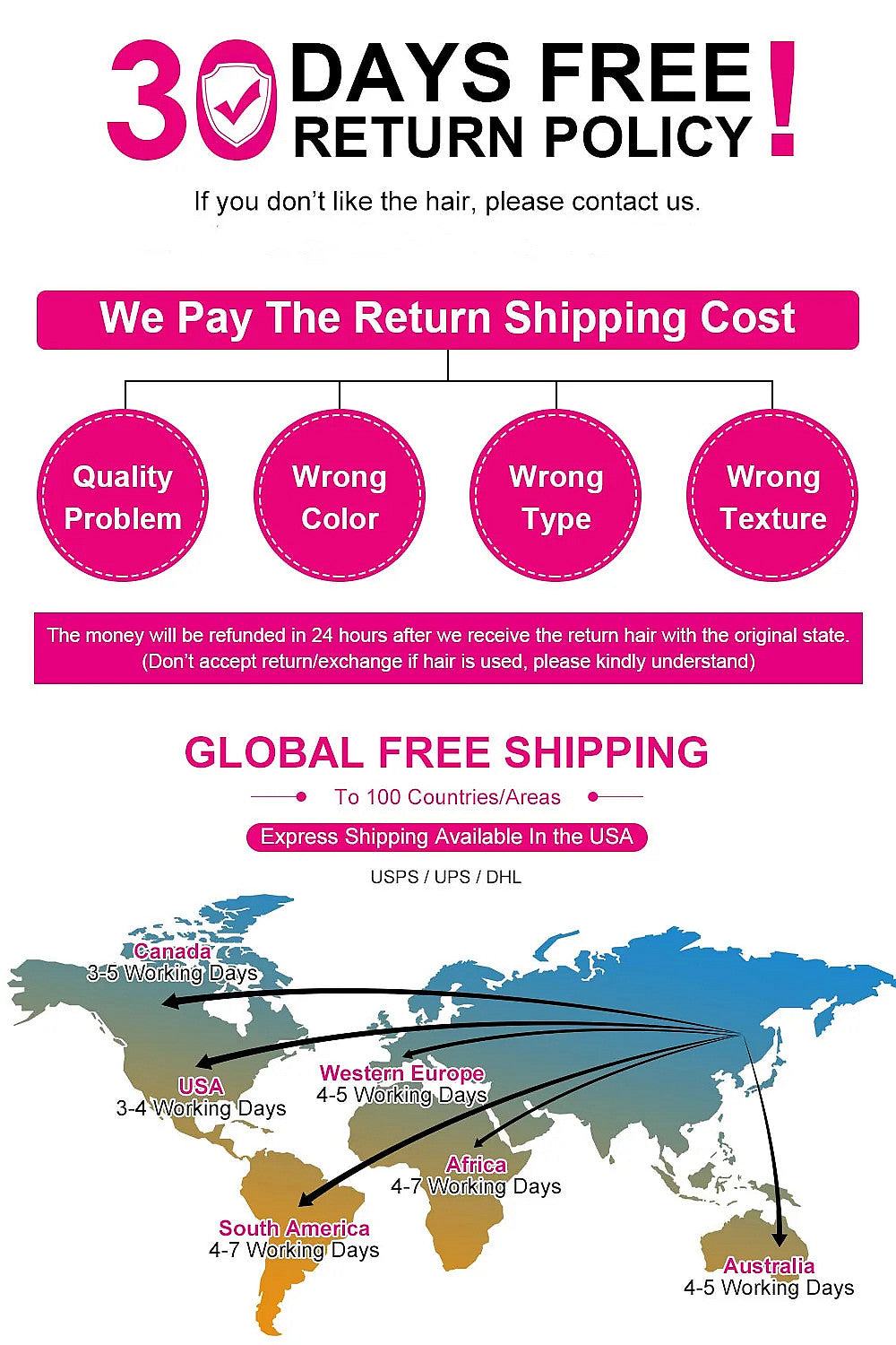 | SHIPPING | The Wig Need To Be Customized, 13*4 Wig May Take Longer Time, Then About 2-5 Working Days To Ship |